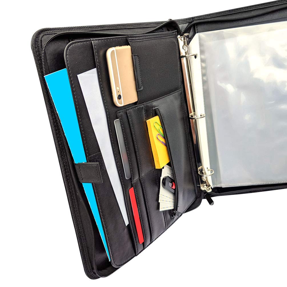 MSP Portfolio Binder with Retractable Handle, Binder Pockets, 3 Rings Binder Zippered Padfolio for Work and Interview- (048 Black)