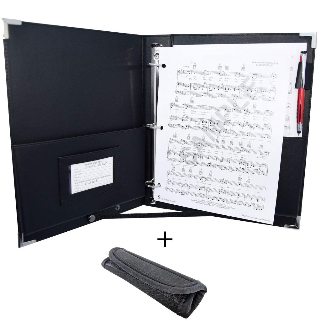 MSP PU Leather Sheet Music Holder | 9.5 x 12" - 3 Rings Choir Folder with Hand Strap for Musician - Medium Size (MSP-210)